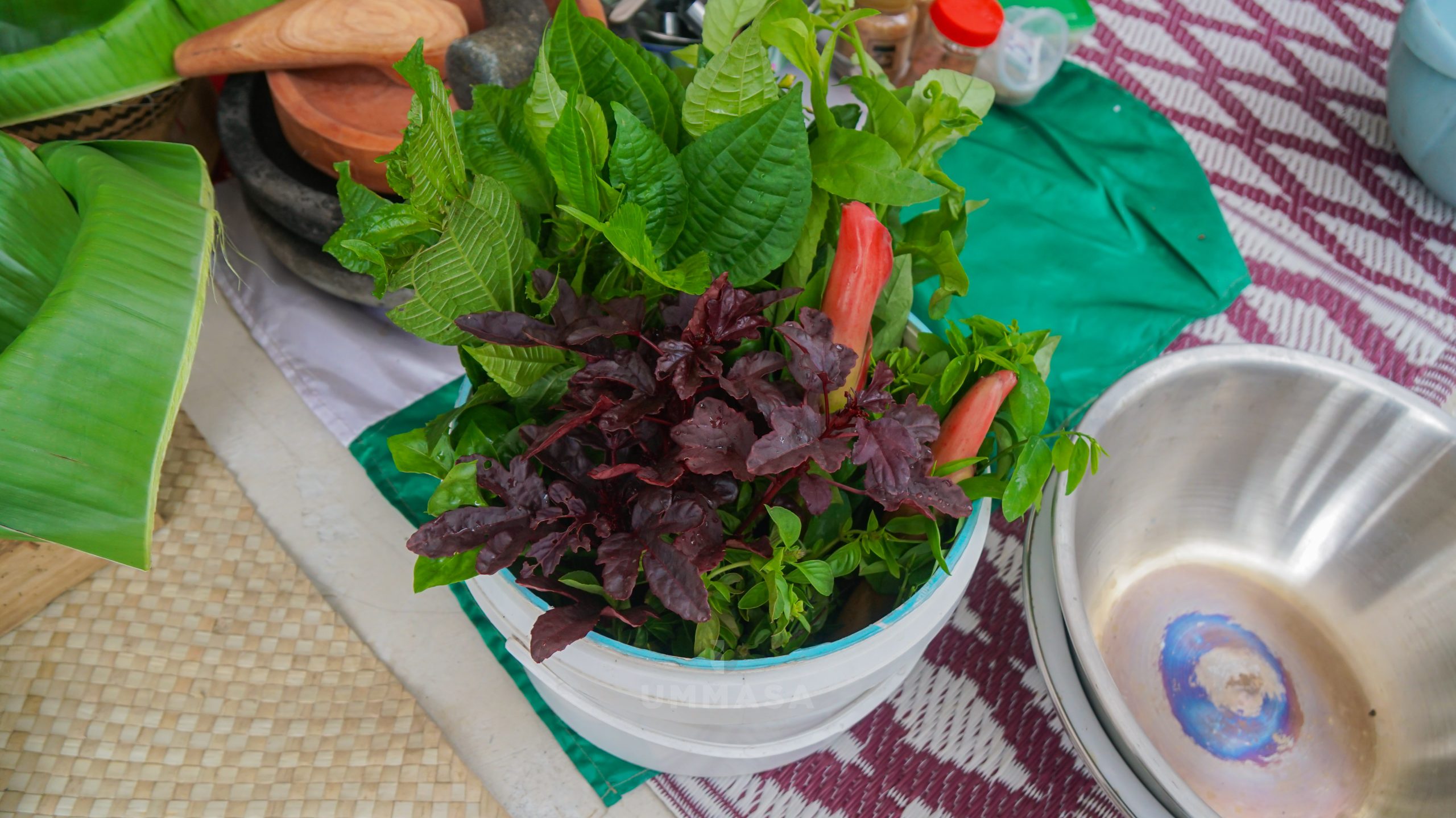 Hari ini kami mengenal dan mempraktikkan pembuatan Nasi Reumbeuy—nasi multigrain tradisional dari beragam jelai dan biji-bijian—yang disandingkan dengan ragam lalapan aneka rasa.