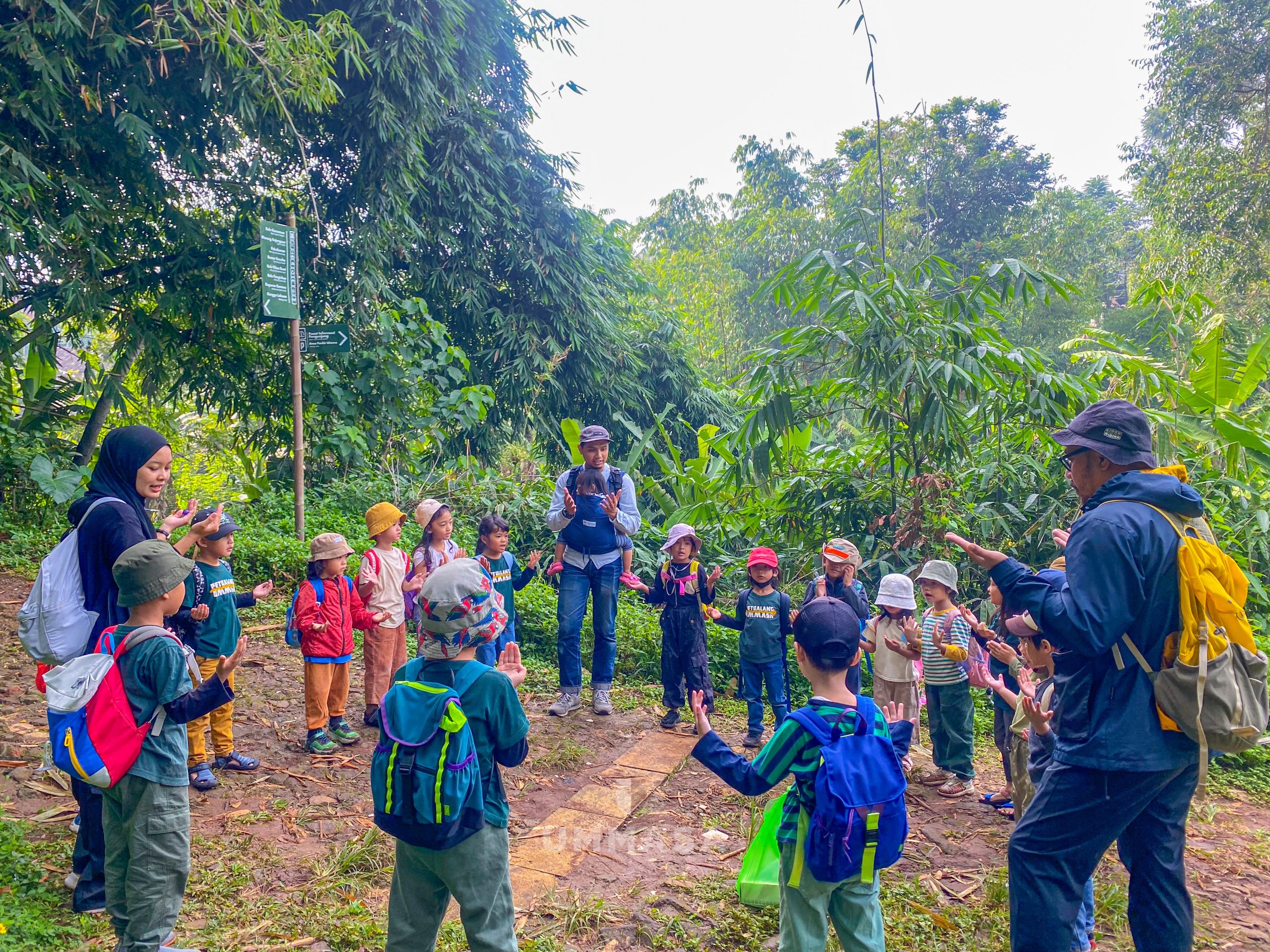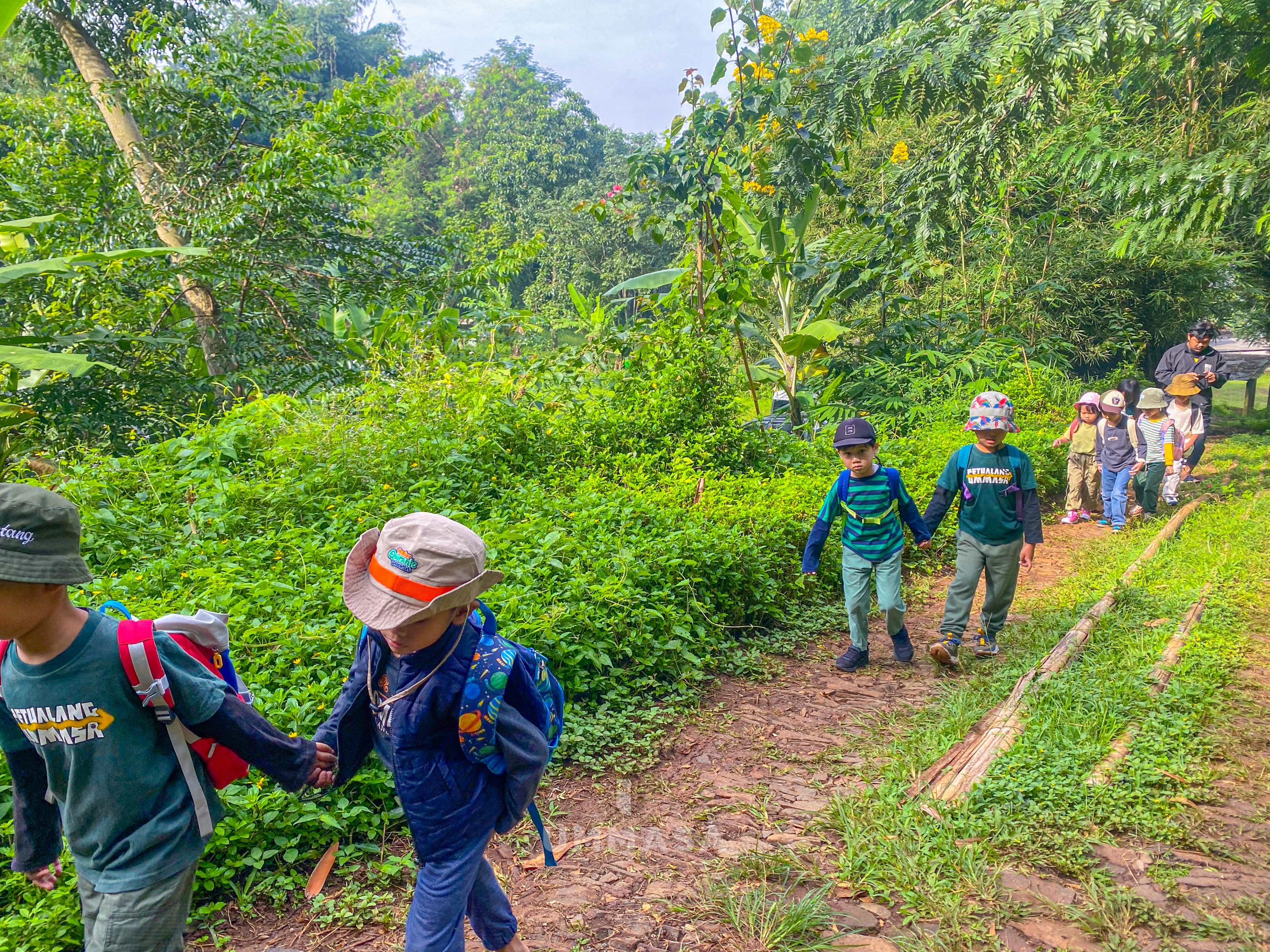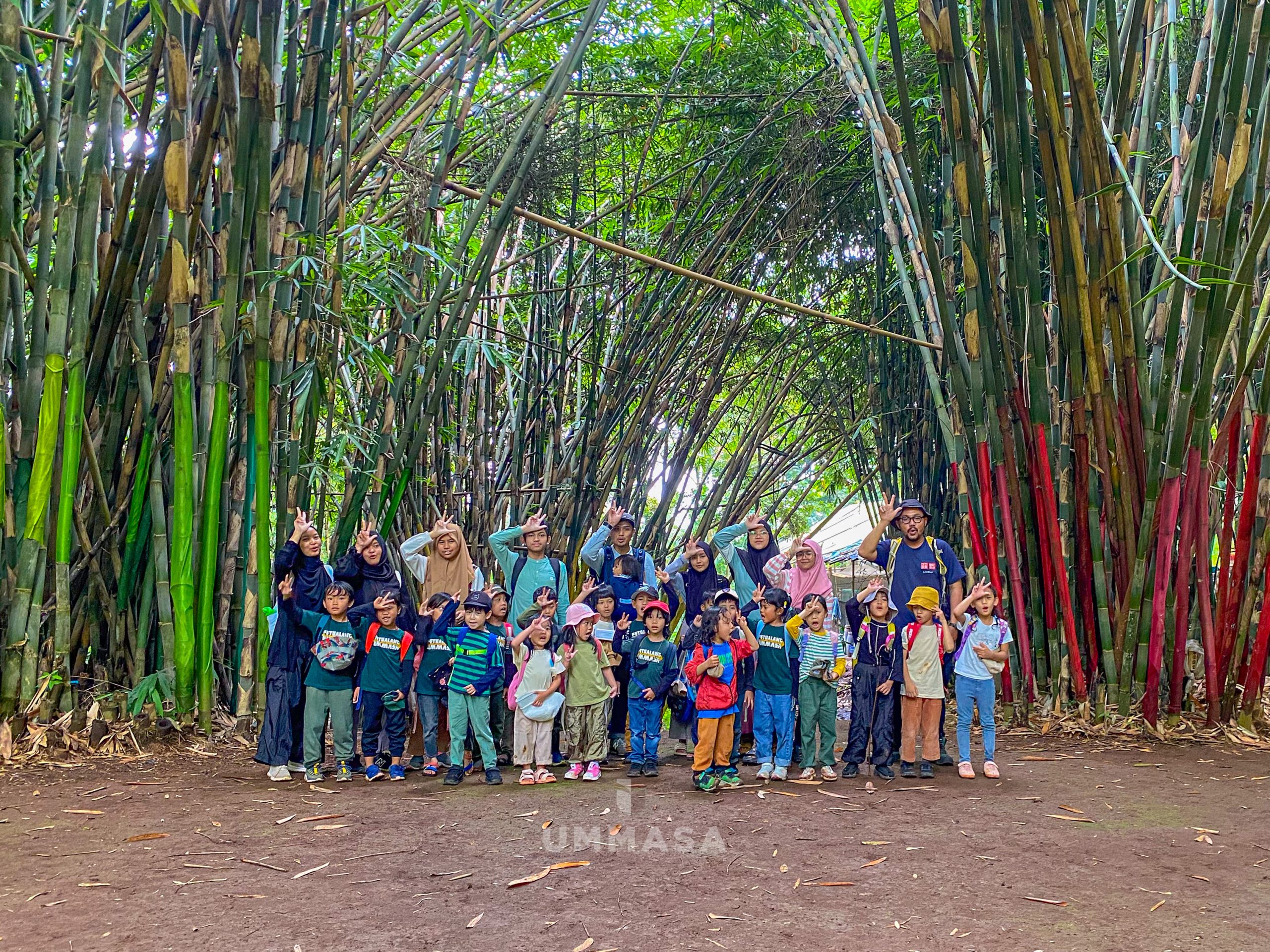 Kami menyusuri rindangnya hutan yang dipenuhi beragam jenis pohon bambu, mulai dari jenis bambu untuk bangunan rumah, bambu untuk pembuatan musik angklung, hingga bambu yang dapat dijadikan bahan makanan.